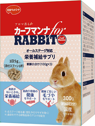 栄養補給が大切な子うさぎ、母うさぎ、シニア期をはじめ全年齢ステージのうさぎに適した総合サプリメントです。